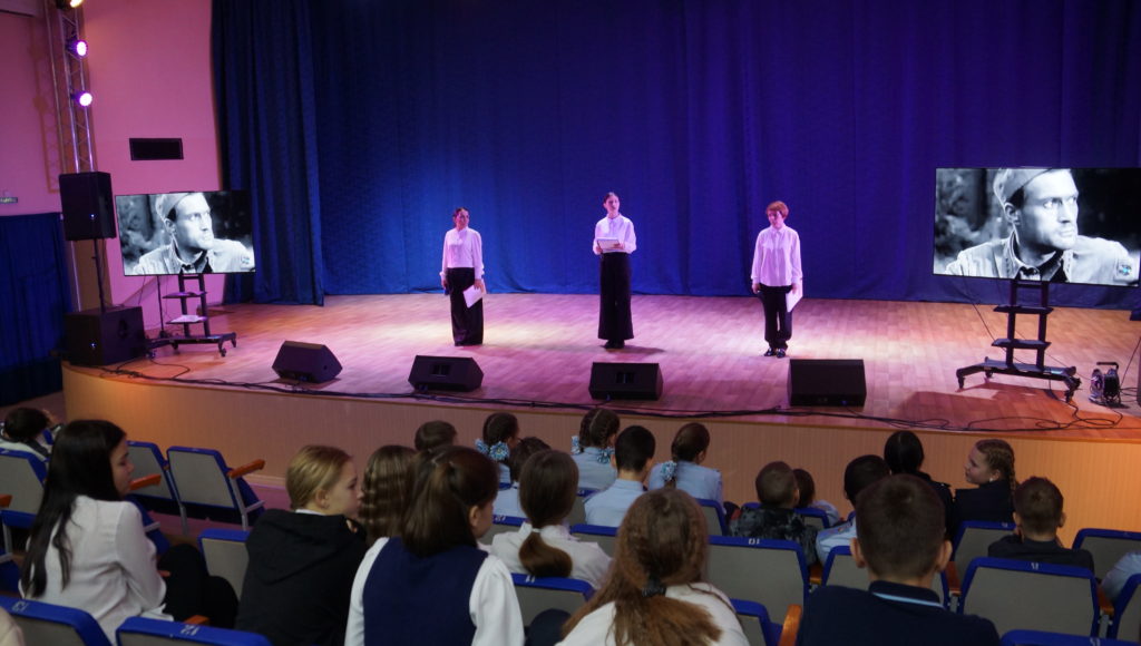 Сегодня школьники приняли участие в познавательной программе, посвящённой Дню Неизвестного Солдата. Ребята узнали об истории создания этого памятного дня, услышали трогательные рассказы ведущих и песни военных лет в исполнении солиста Сергея Карнауха. На экранах мы показали исторические хроники тех суровых лет. Надеемся, что эта встреча помогла ребятам сохранить память о героях в своих сердцах.